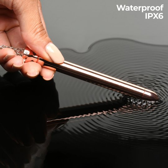 Enjoy wearing this gorgeous, stainless steel vibrator around the zinc alloy chain at your neck. The dazzling gem stones will catch your lover’s eye and match any chic or edgy aesthetic! When you’re feeling aroused, take the necklace off and simply press the button at the top to turn the vibrations on. Use the smooth, round tip to get exactly to the spot on your clit that feels divine, and enjoy living in ecstatic bliss with a beautiful toy that only those who are in the know… will really know about! Enjoy this toy in the shower, too! It is IPX6 waterproof rated.