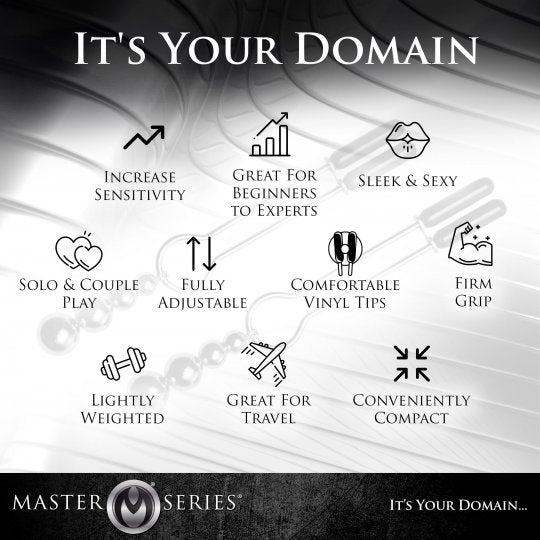 These tweezer style nipple clamps adorn the chest with three graduated silver balls that dangle from the end. The adjustable clamps have a sliding ring that will allow you to modify the amount of pressure that is applied, and are coated with vinyl for comfort and a better grip. These beaded clamps are ideal for beginner or advanced nipple play. With a little imagination, they can also be used on the scrotum, penis, labia, ears, or any part of the body you desire...