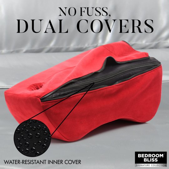 With this high-density foam pillow, you get all the support you need while riding the edge of pleasure! This pillow is ergonomically designed to fully support your weight. The 7 inch deep, open-ended pocket fits nearly any wand vibrator so it stays in place as you enjoy hands-free stimulation! As a bonus, the soft outer cover and the water-resistant inner cover are both machine washable! Enjoy hands-free stimulation as you straddle the ultra soft pillow, effortlessly lifted up so you can enjoy your partner's passionate affections or angle yourself to ride the toy of your choosing as you indulge in solo-play! The toy pocket at the top fits most toys but is especially designed for wands, vibrators and dildos. Spice up your sex life and use a vibrator while getting penetrated by your partner!