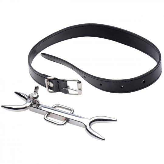 Deviate from the norm with a posture collar that is anything but average! The Heretics Fork keeps your slaves chin high with a sadistic double-ended prong that digs into the tender flesh of their chest and neck if they do not keep the pressure off! Adjust and fasten the sleek and attractive leather collar around their throat and use the thumb-screw to alter the length of the fork. Force your lovers head back as far as you wish! The striking aesthetic of this unique posture collar will heighten arousal for both of you, creating a more intense scene!