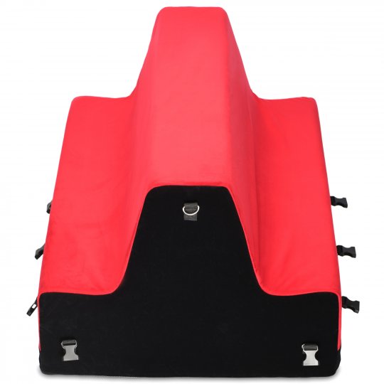 Enjoy longer scenes and more comfortable kink with this Love Bench! Never before has there been such an easy to use and ergonomic bondage bench. Designed so your torso and lower limbs are fully supported but cushioned at the same time. Don't sacrifice your time and desires by playing with furniture that doesn't allow for superior comfort! You can choose what type of pain you might enjoy without succumbing to numb hands and aching knees with high-density foam that is firm enough to lift you up but not so soft that you sink into the pillow. This vibrant red and deep black bench is easy to move around and can be placed on the floor or a bed to play on. With 12 different attachment points you still enjoy playing while restrained. The bench includes 2 wrist cuffs, 2 ankle cuffs, 3 connectors with D-rings and 2 restraint connectors. Due to the bench being softer than a hard wood or metal bench, you can also explore more positions that your body would normally allow you to! The velvety soft outer cover feels luxurious against your bare skin and the water-resistant inner cover protects the foam from water, spills and moisture so you can enjoy this item for years to come. Both covers are machine washable so you can easily care for your new favorite bondage bench!